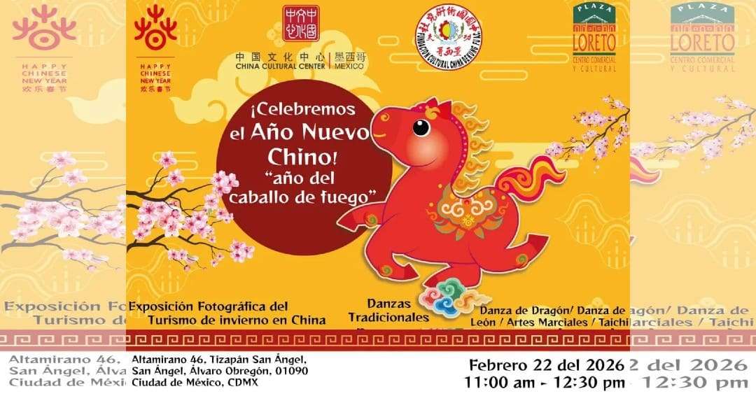 La pasión, libertad y alegría del “Caballo de Fuego” inundarán la Plaza Loreto, en la zona de San Ángel, con un espectacular festejo por el Año Nuevo Chino 2026. El evento contará con la participación estelar de la Fundación Cultural China de Kung Fu y el China Cultural Center.