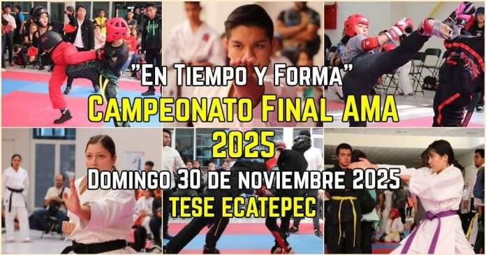 El Campeonato Final AMA 2025, evento organizado por la organización Artes Marciales Asociadas (AMA), tiene nueva fecha y sede confirmadas. El torneo se llevará a cabo el domingo 30 de noviembre de 2025 en las instalaciones del Tecnológico de Estudios Superiores de Ecatepec (TESE).