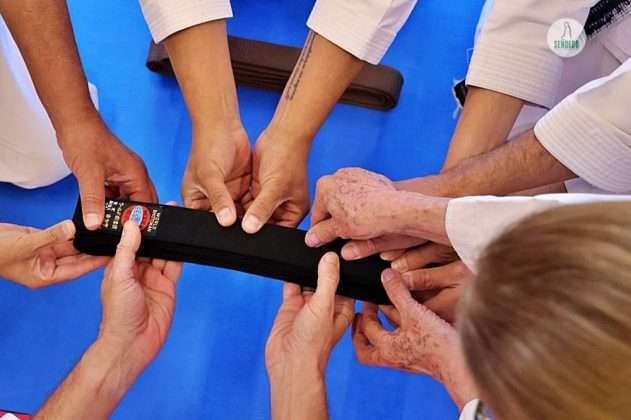Una vez con su nueva cinta bien sujeta, el nuevo graduado se puso de pie en la posición de Musubi Dachi para realizar una reverencia de respeto, recibiendo la ovación, abrazos y las palabras de felicitación de sus compañeros y familiares, algunas de las cuales estuvieron acompañadas de lágrimas de emoción por el gran logro alcanzado.