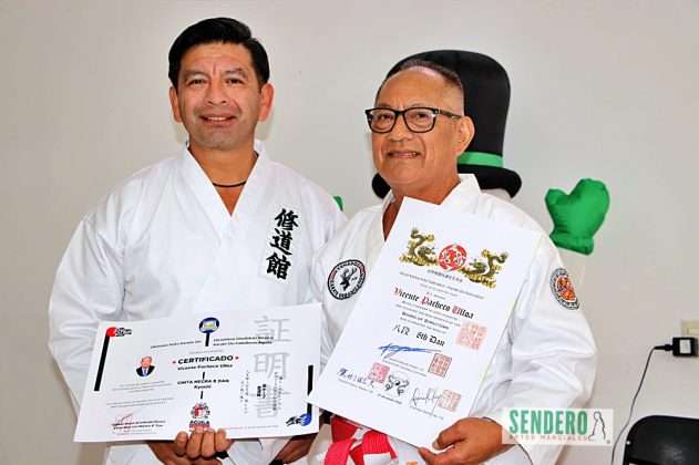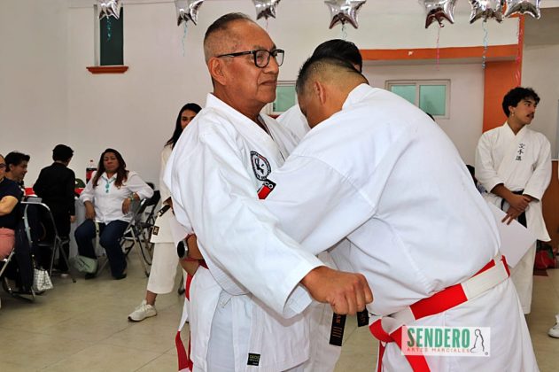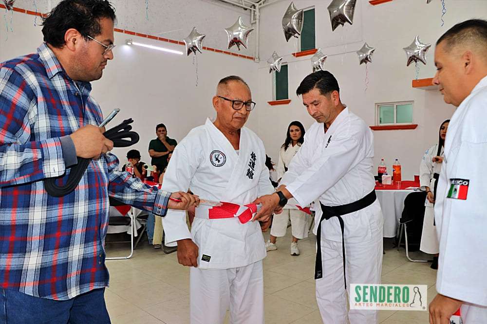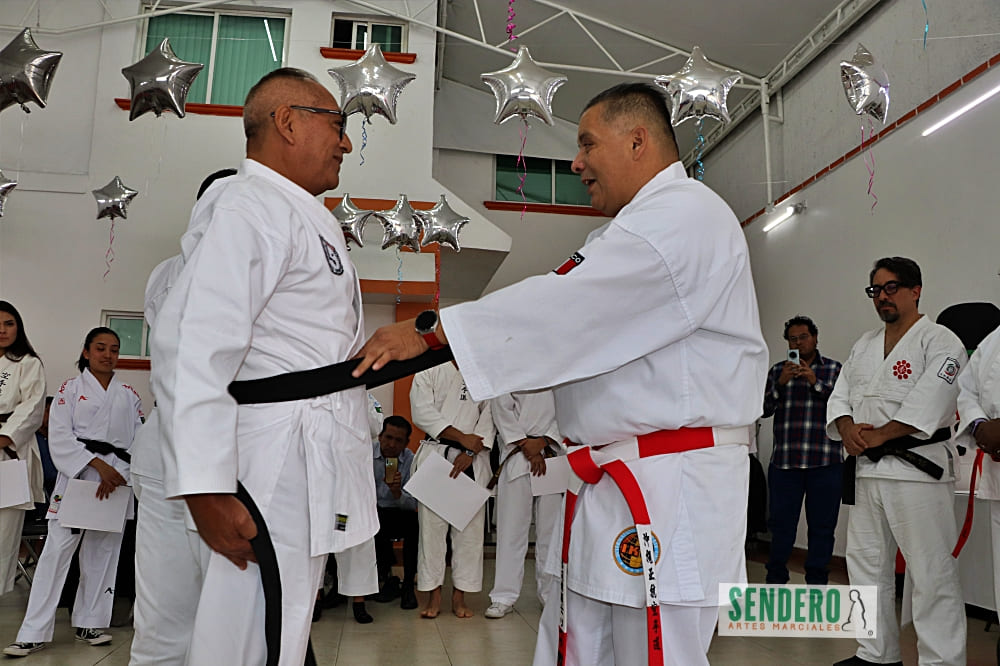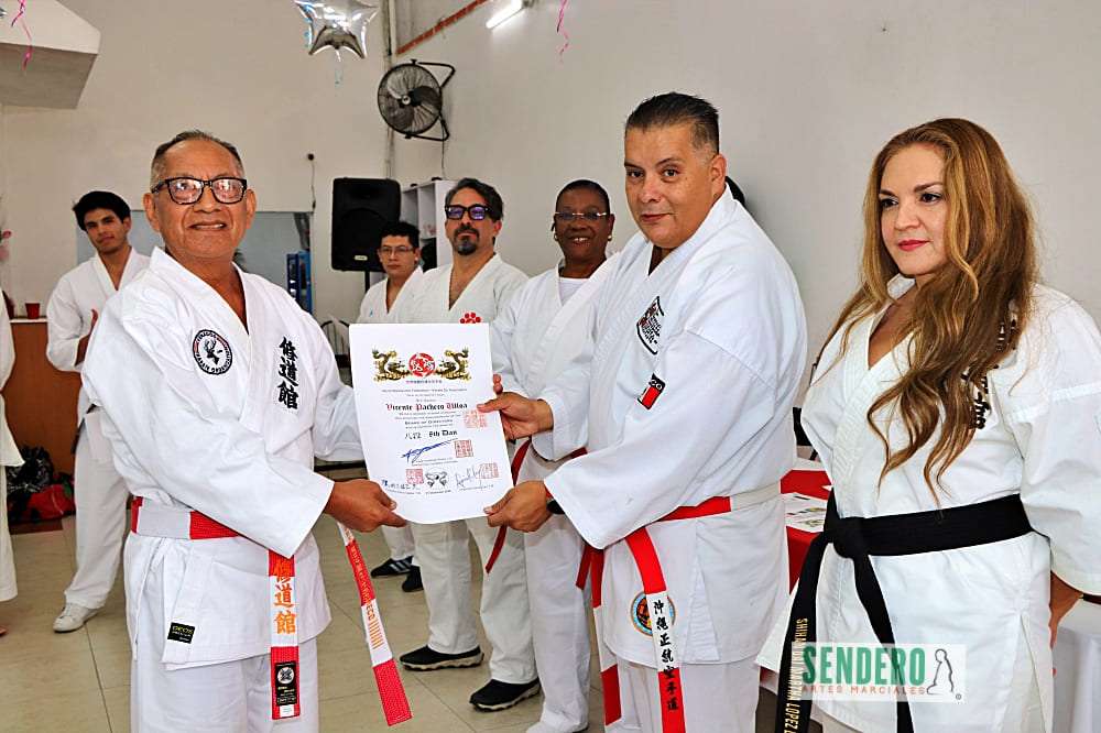 La ceremonia también fue el marco para el ascenso de grados Dan a varios de los competidores por su esfuerzo y espíritu demostrado en el aprendizaje y práctica del Karate-Do, pero el momento cumbre ocurrió cuando el maestro Vicente Pacheco Ulloa, de la escuela Shudokan Venados Karate-Do de Veracruz, recibió su certificado de Octavo Dan y el título de Kyoshi, tras una trayectoria ejemplar de 60 años de práctica.