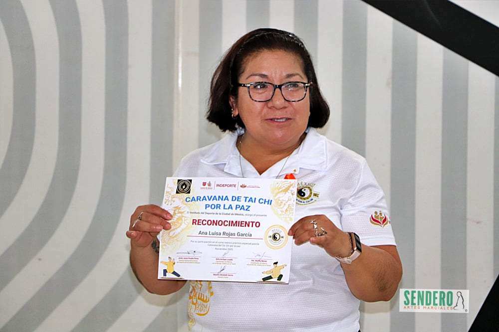 La Dra. Martha Nieves, pionera de la Psicología del Deporte en México, celebró la entrega de los que se convirtieron en entusiastas alumnos. Les recordó que esta capacitación es solo el primer paso para adentrarse en el vasto conocimiento del Taijiquan y buscar el camino para llegar a ser un maestro.