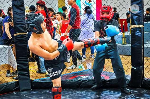 De manera simultánea, en la jaula contigua, se desarrollaron emocionantes encuentros de Box, donde los contrincantes mostraron gran habilidad técnica.