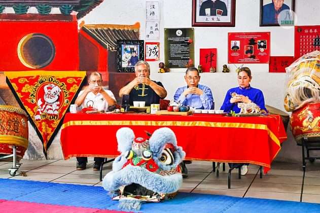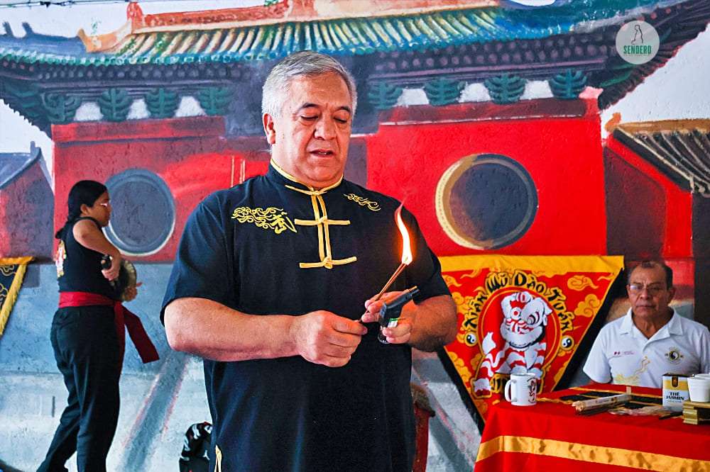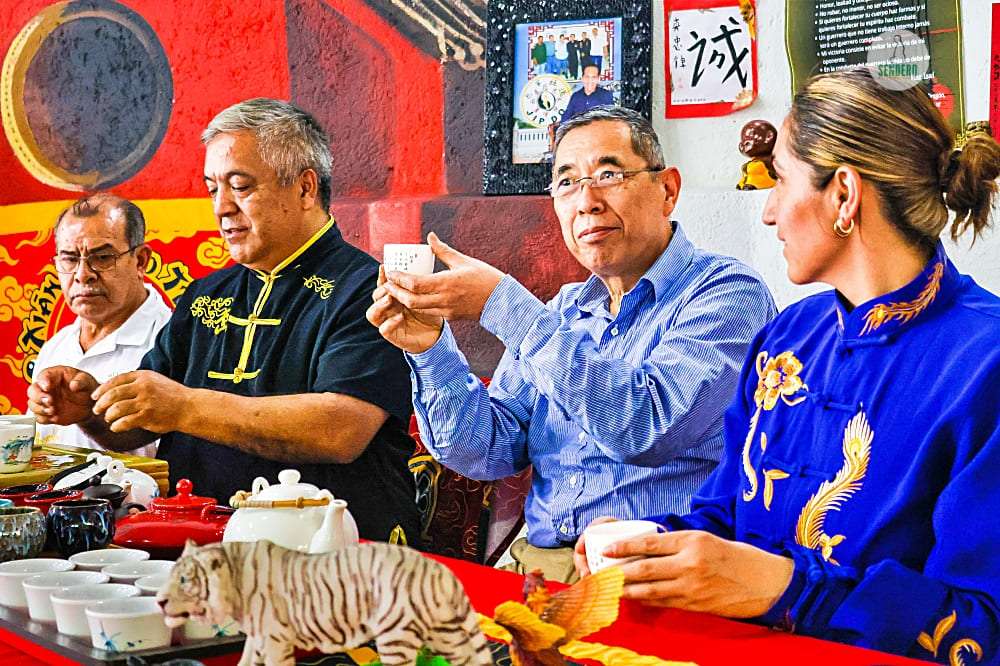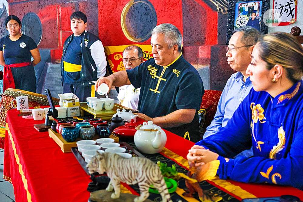 Tras la intensa Danza de León, Shifu Enrique Lozada dirigió la Ceremonia del Té, explicando la filosofía y el significado profundo de este ritual en la tradición china como la apertura de un gran momento para desear salud, prosperidad, armonía y amistad entre todos los participantes, quienes al beber la taza de té despacio, los asistentes compartieron las bendiciones del cielo, la tierra y de cada uno hacia los demás.