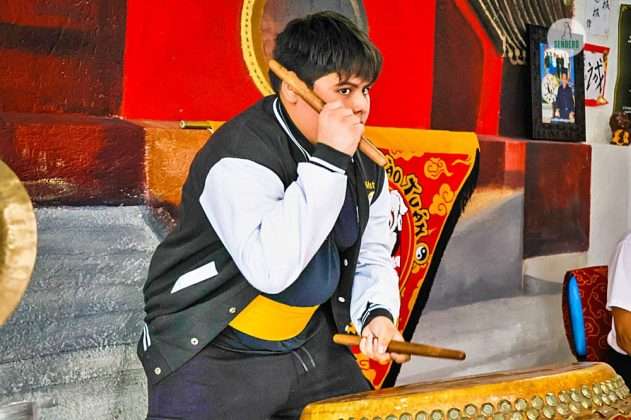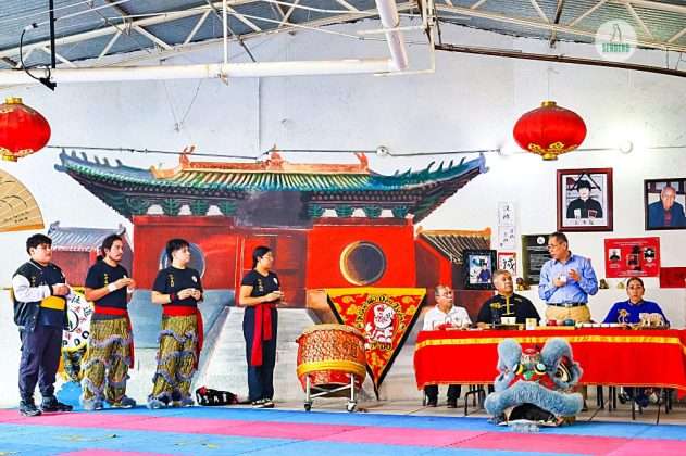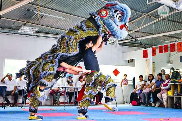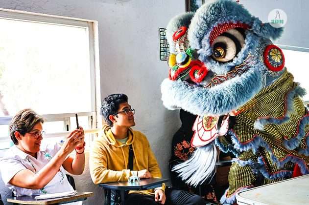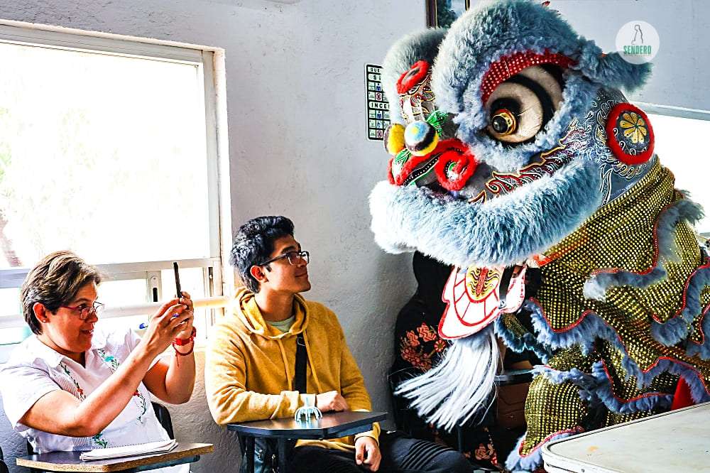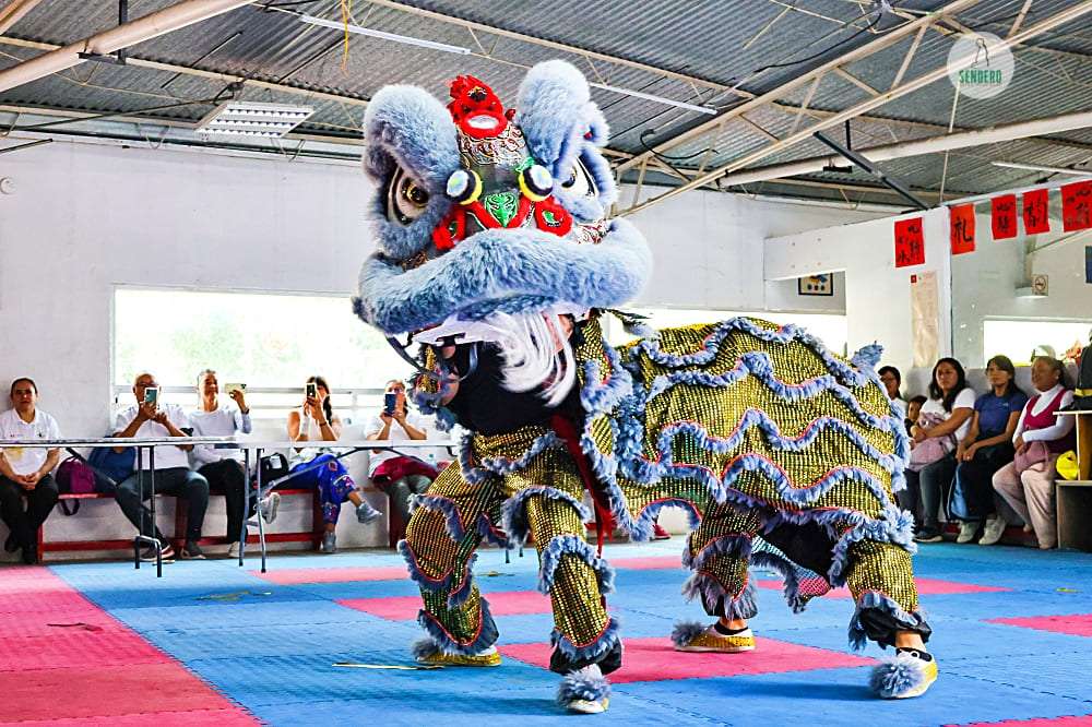 Con la potencia del toque de tambor y los platillos, el león chino de la escuela despertó para iniciar su danza. Este ritual tradicional se realizó para atraer energías positivas al lugar y a todos los presentes, bendiciendo el inicio de la nueva generación.