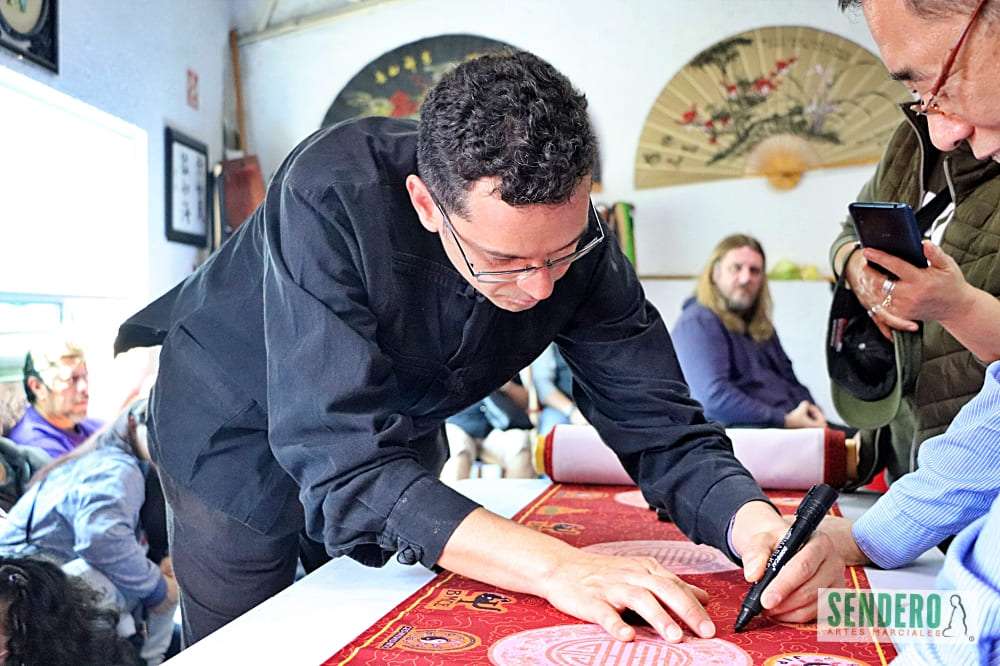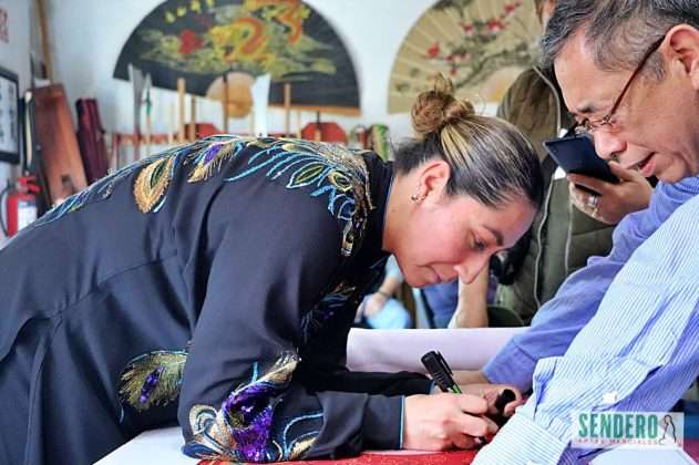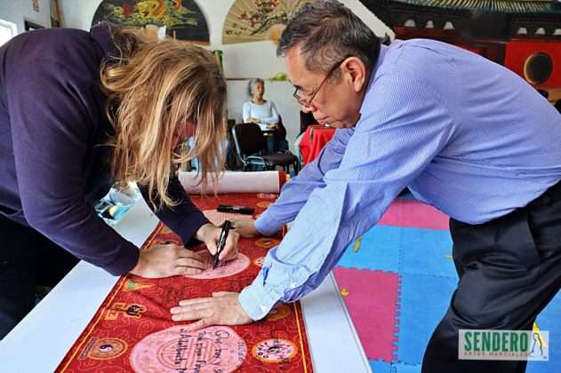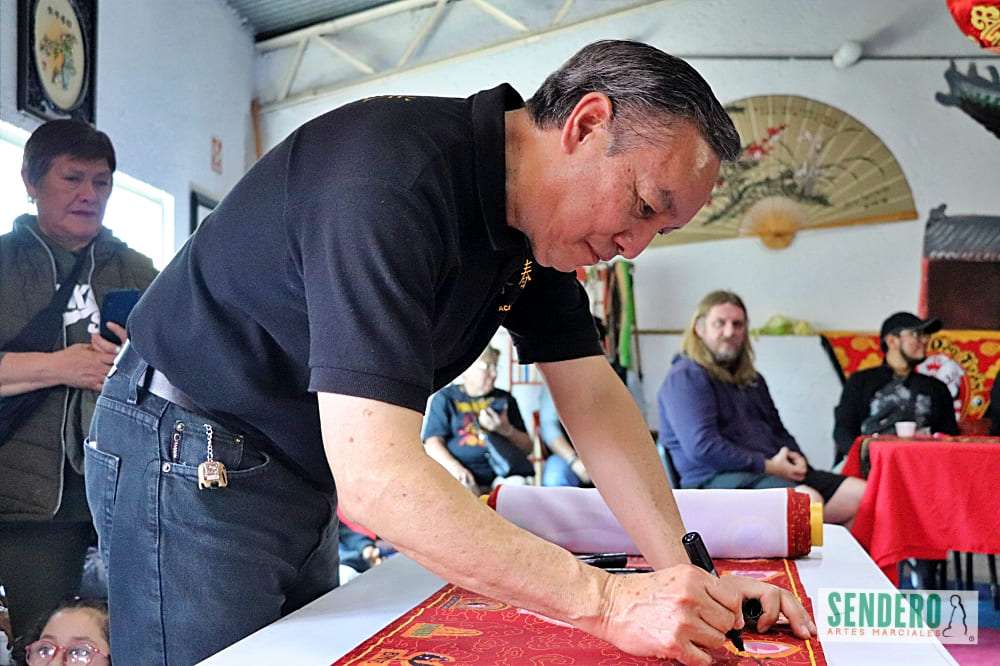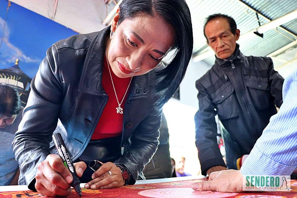 Posteriormente, se llevó a cabo la simbólica ceremonia de la “Plegaria de Seda”. En un lienzo de nueve metros, los presentes plasmaron sus nombres y sus deseos para este año. Este pergamino histórico se resguardará para ser reabierto durante los próximos nueve años, convirtiéndose en un testigo silencioso de la fraternidad y el crecimiento de la comunidad de CES Wushu.
