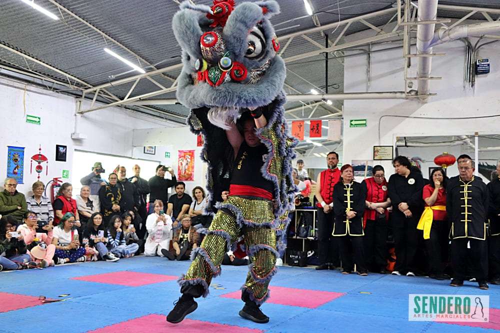 Para limpiar el espacio de cualquier negatividad, los Leones Chinos irrumpieron en el lugar al compás de tambores y platillos. Su danza energética fue el preámbulo perfecto para las exhibiciones técnicas, donde se demostró el alto nivel de las instituciones.