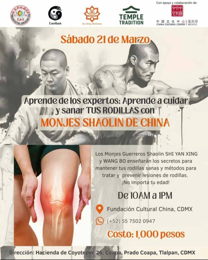 En esta sesión, que se desarrollará de las 10:00 a las 13:00 horas, los monjes guerreros compartirán técnicas de la Medicina Tradicional China (MTCh) para el cuidado de las articulaciones.