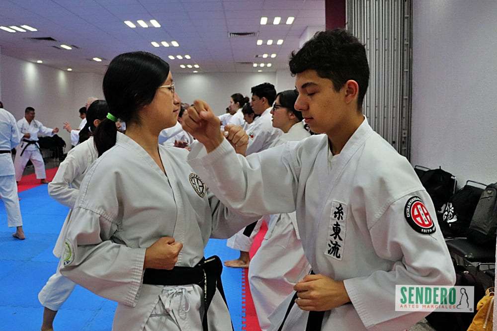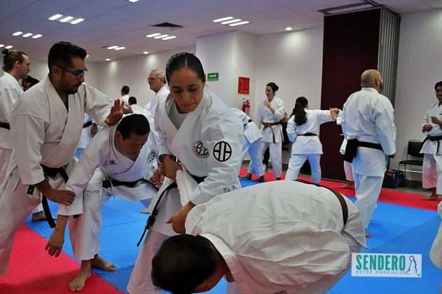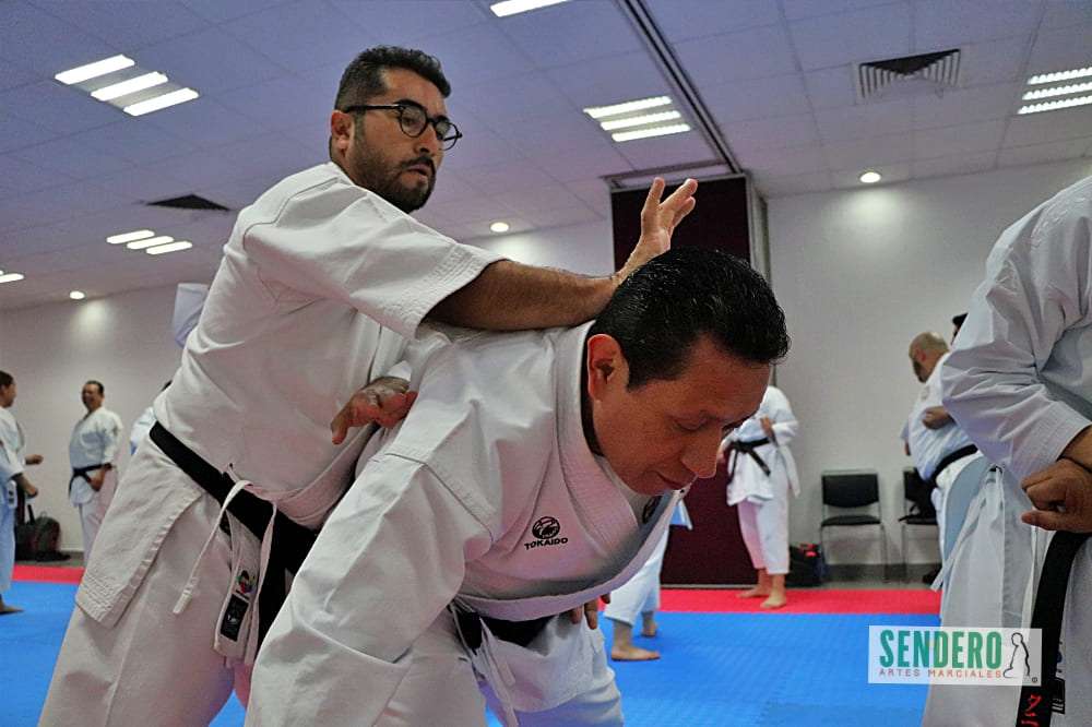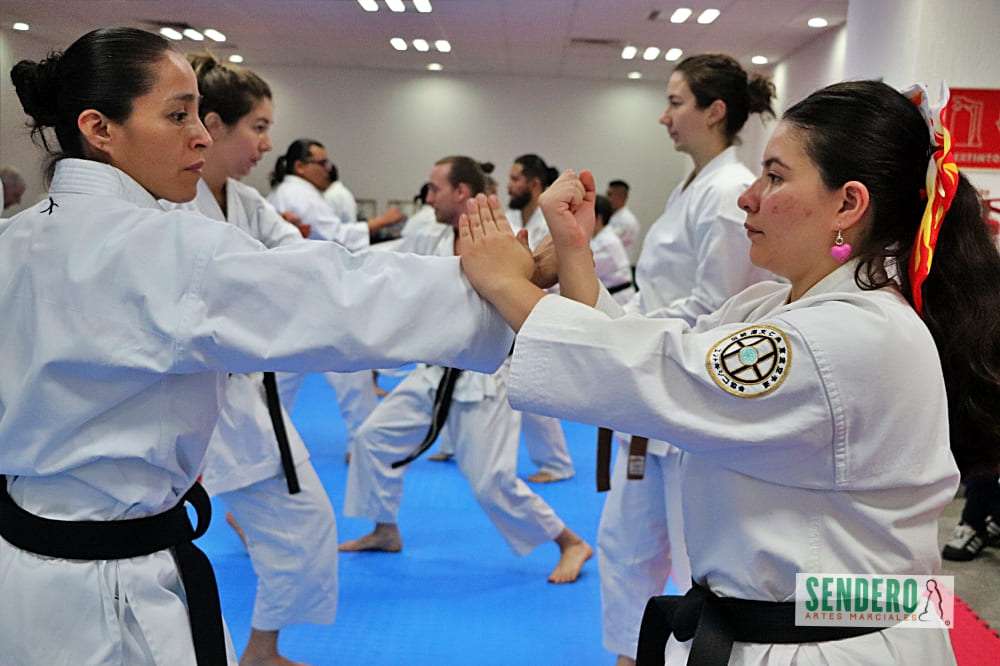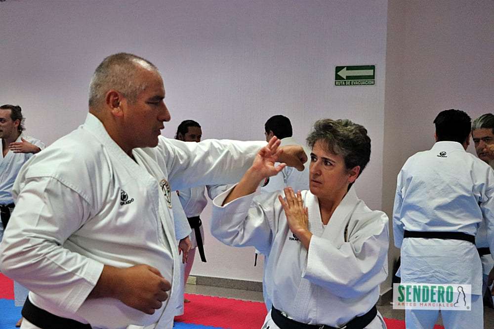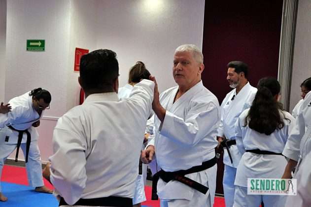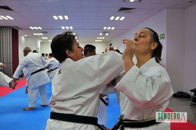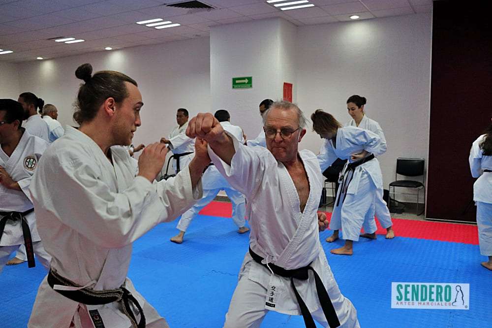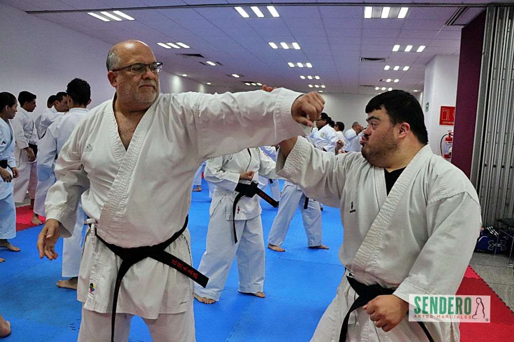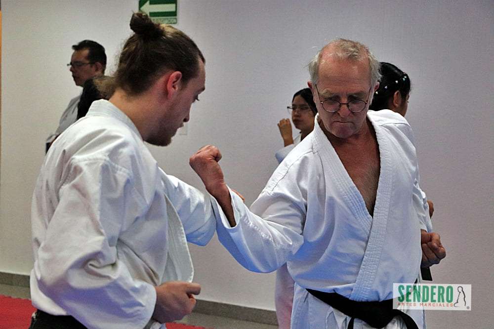 Tras el trabajo técnico individual, los ejercicios se trasladaron al combate en pareja, donde Shihan Molina demostró diversas variaciones y aplicaciones prácticas (Bunkai). Mientras el grupo ejecutaba las indicaciones, los Shihan Rafael Gaytán y Anselm Stahl supervisaron personalmente a los practicantes para corregir detalles técnicos. Entre los asistentes destacó Adrián, competidor con Síndrome de Down que ha puesto en alto el nombre de México en torneos internacionales.