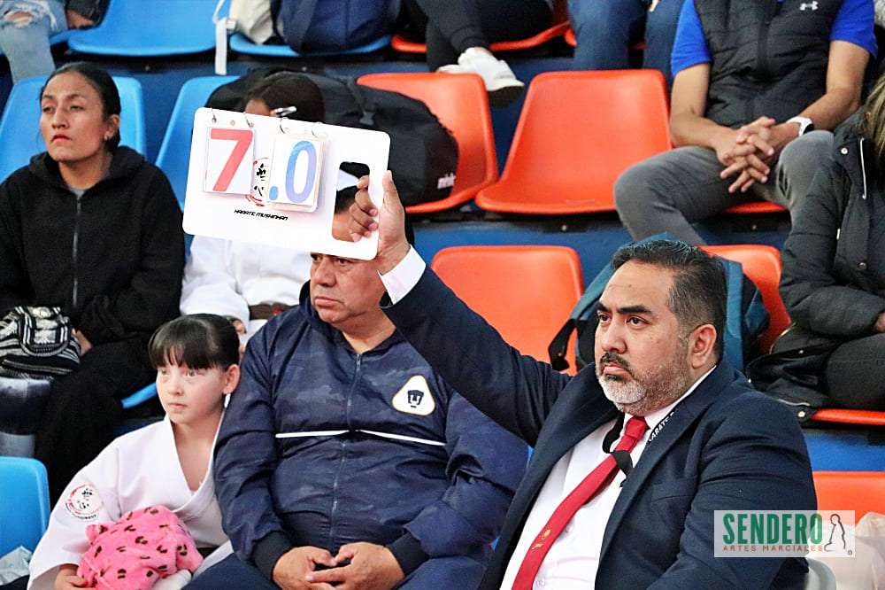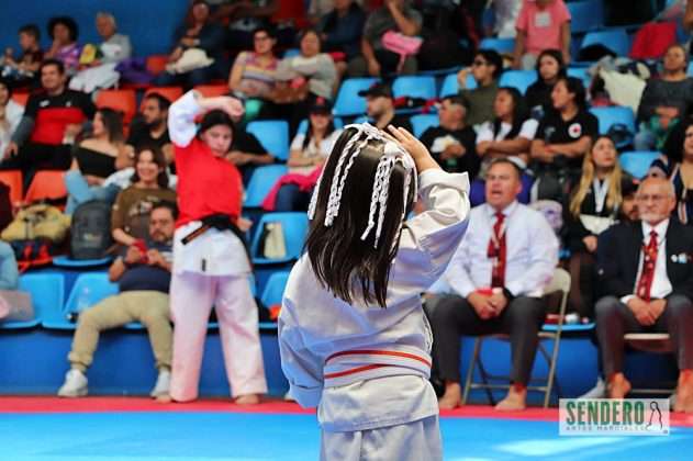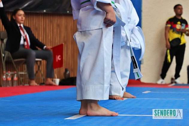 Vestidos con impecables karateguis, los practicantes de categorías infantiles inauguraron el tatami con las pruebas de Kata (formas). Cada área contó con un panel de cuatro jueces de esquina y un juez central, quien mediante tarjetas indicaba la forma a ejecutar, evaluando con rigor técnico cada movimiento antes de definir al ganador con las banderas Aka (roja) o Shiro (blanca).